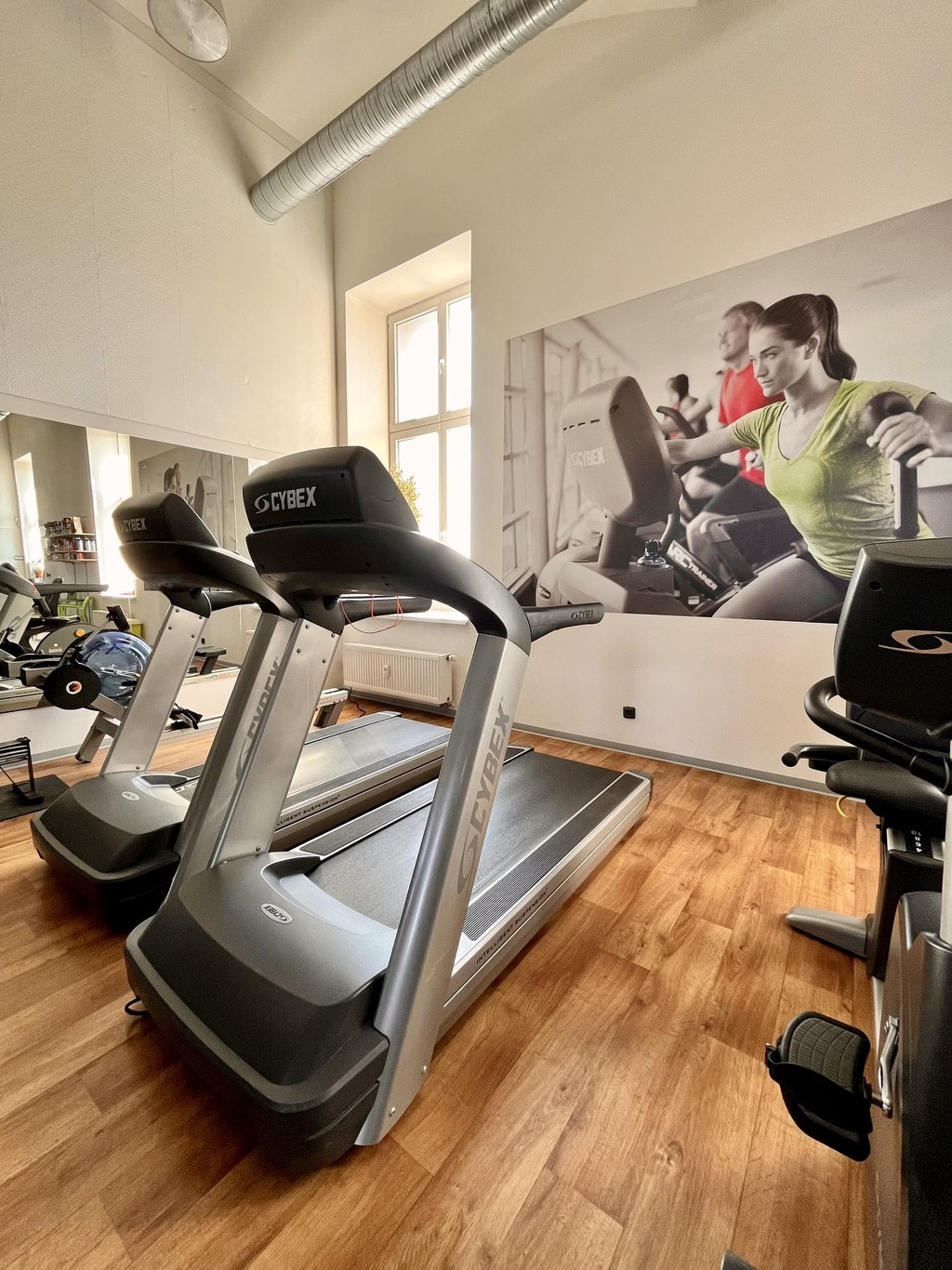 Prostor o velikosti 400 m² je rozdělen na kardio, funkční zónu, činkárnu, posilovací stroje a cvičební sál, který je volně přístupný, pokud neprobíhá plánovaná skupinová lekce. Moderní vybavení zahrnuje LCD displeje, WiFi, fitness bar s občerstvením a široký výběr sportovních doplňků. K dispozici jsou také dámské a pánské šatny se sprchami pro maximální komfort našich klientů.